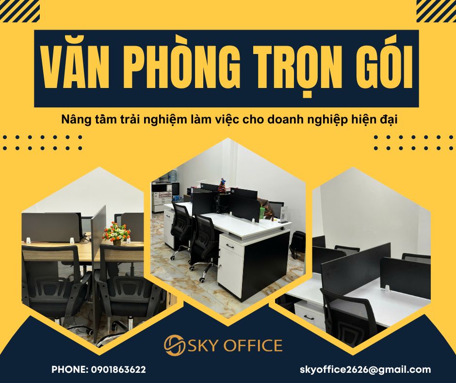 Sky Office cung cấp dịch vụ văn phòng trọn gói với không gian được thiết kế hiện đại, đầy đủ trang thiết bị cần thiết. Khách hàng không cần lo lắng về bàn ghế, máy lạnh, internet, điện, nước hay dịch vụ vệ sinh vì tất cả đều đã được bao gồm trong gói dịch vụ. Điều này giúp doanh nghiệp tiết kiệm tối đa chi phí đầu tư ban đầu, chỉ cần tập trung vào hoạt động kinh doanh cốt lõi.