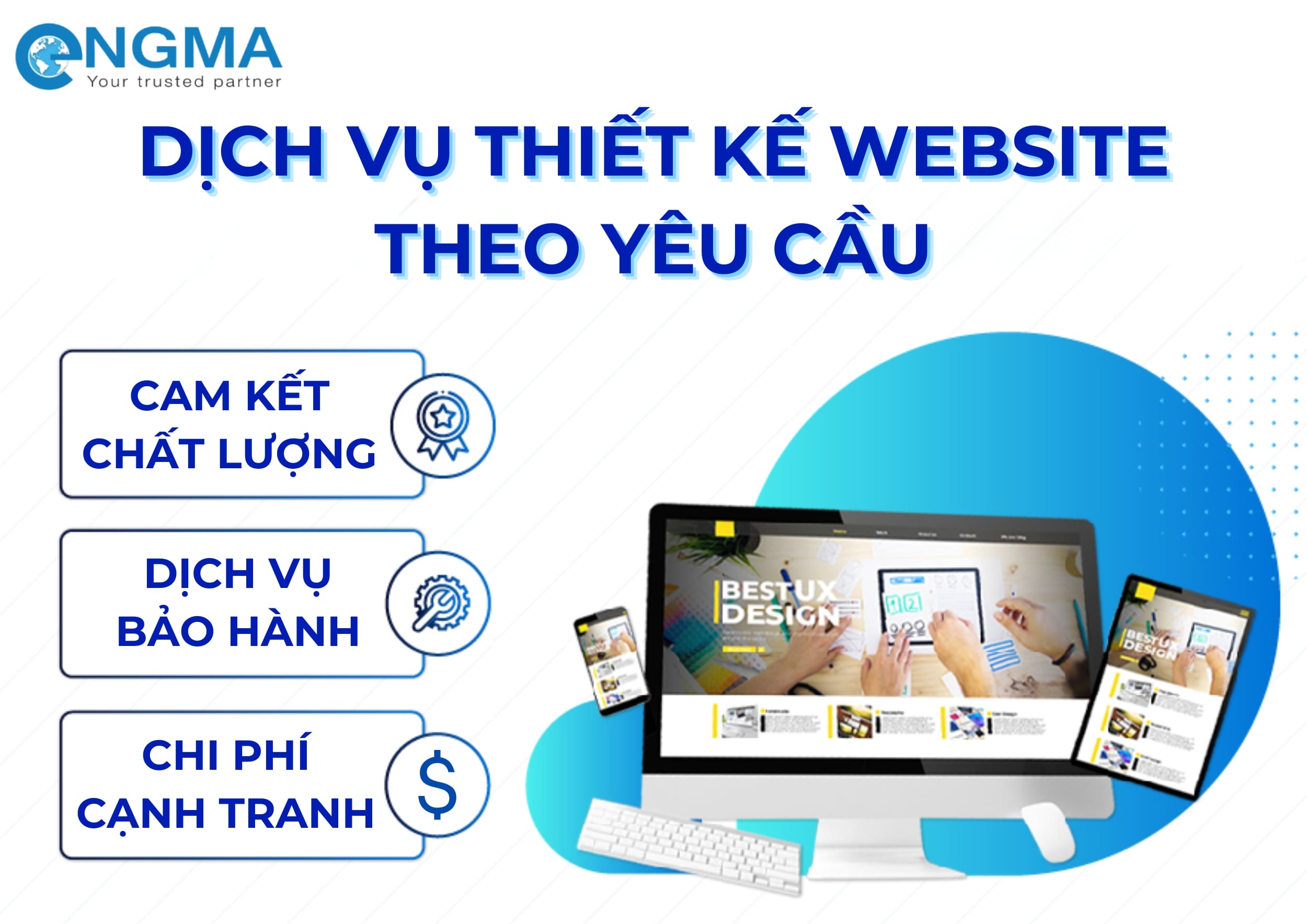 ENGMA tự hào là Công ty thiết kế website chất lượng được nhiều doanh nghiệp trong và ngoài nước tin tưởng lựa chọn. Từ những dự án nhỏ đến hệ thống website quy mô lớn, đội ngũ của ENGMA luôn cam kết mang lại sản phẩm đạt chuẩn quốc tế, tối ưu trải nghiệm người dùng và đảm bảo hiệu suất vận hành ổn định.